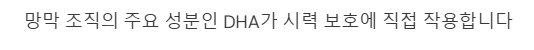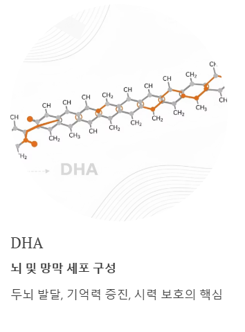 | DHA | 뇌 및 망막 세포 구성 | 두뇌 발달, 기억력 증진, 시력 보호 |