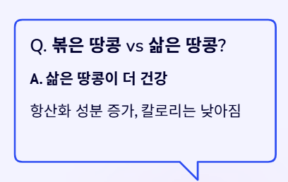 A4. 밤늦게 먹는 땅콩은 높은 칼로리로 인해 지방으로 축적되기 쉽습니다. 가급적 활동량이 많은 낮 시간대에 간식으로 드시는 것이 땅콩 효능을 다이어트에 활용하는 방법입니다.