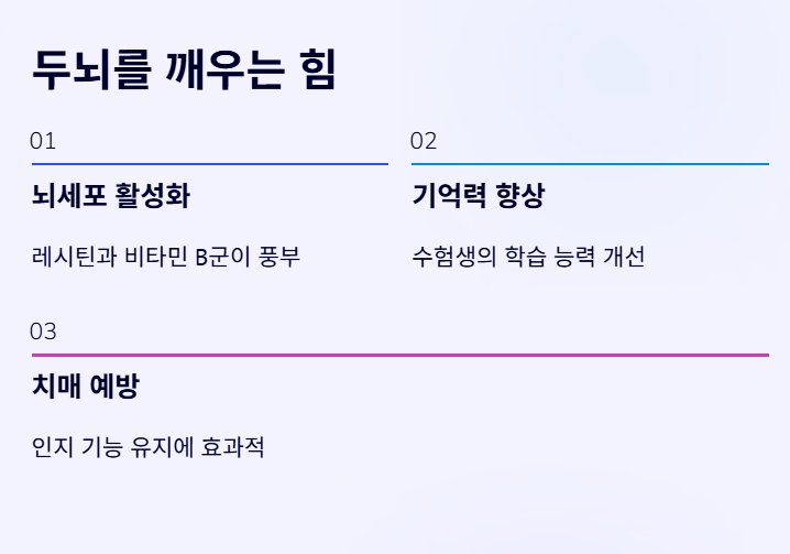 • 두뇌 건강 및 치매 예방: 레시틴과 비타민 B군이 풍부하여 뇌세포를 활성화합니다. 수험생의 기억력 향상이나 어르신들의 인지 기능 유지에 긍정적인 땅콩 효능을 보여줍니다.