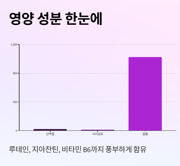 | 칼륨 | 약 1,025mg | 혈압 조절 및 나트륨 배출 |