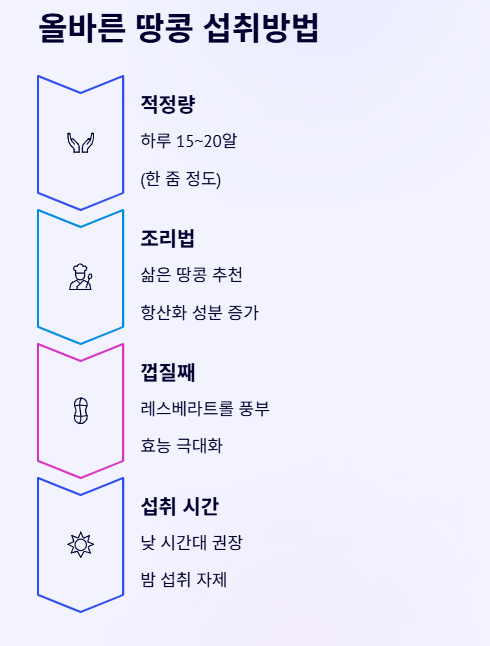 땅콩 효능은 심혈관 건강과 두뇌 활성화, 체중 조절에 탁월하지만, 고칼로리이므로 하루 20알 내외의 권장량을 지키고 알레르기 유무를 확인하며 껍질째 섭취하는 것이 가장 건강한 땅콩 섭취방법입니다.